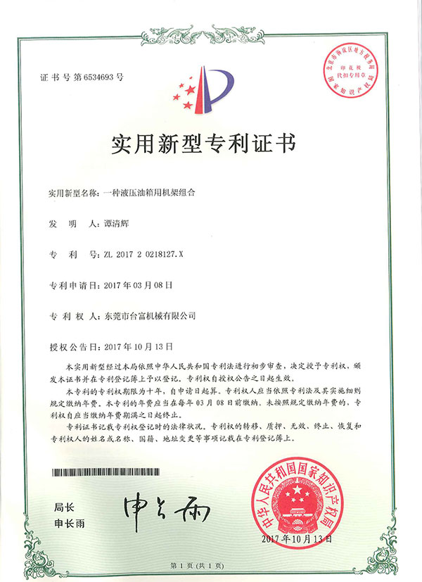 上一條:一種鎖模組合專利證書 | 下一條:一種柱塞油缸專利證書