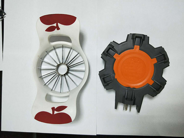 ●上模板配置二個(gè)上模具,圓盤上配置二個(gè)下模具,成型時(shí)圓盤做180°正反轉(zhuǎn)交替。即可完成雙色(雙物料)的射出成型,(或包覆成型)